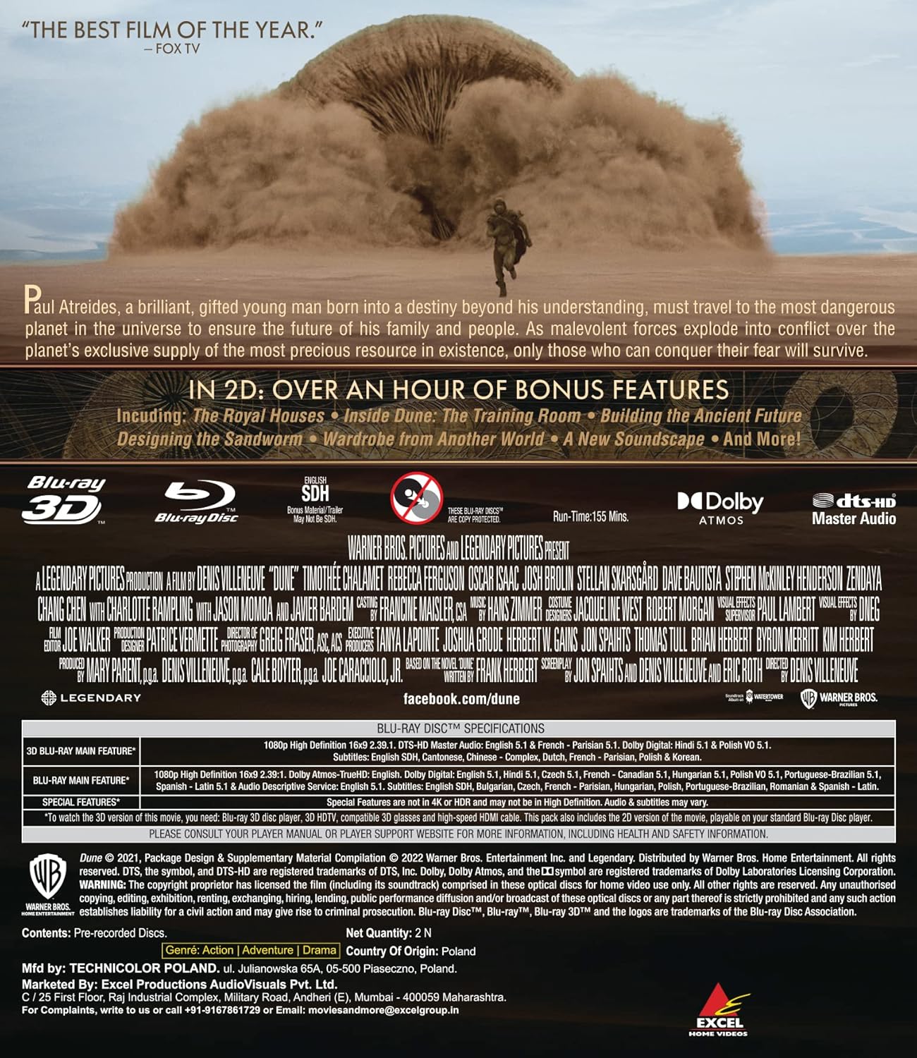 Pierwsza część Diuny Villeneuve'a wychodzi w Polsce 12.01.2022, m.in. na BD (2D i 3D) oraz UHD.